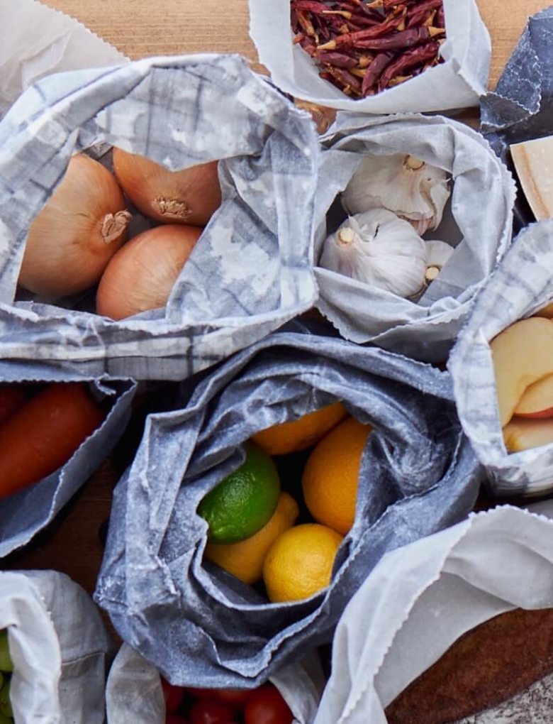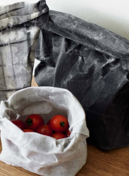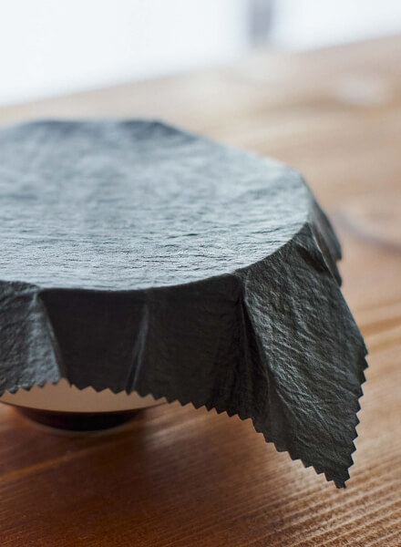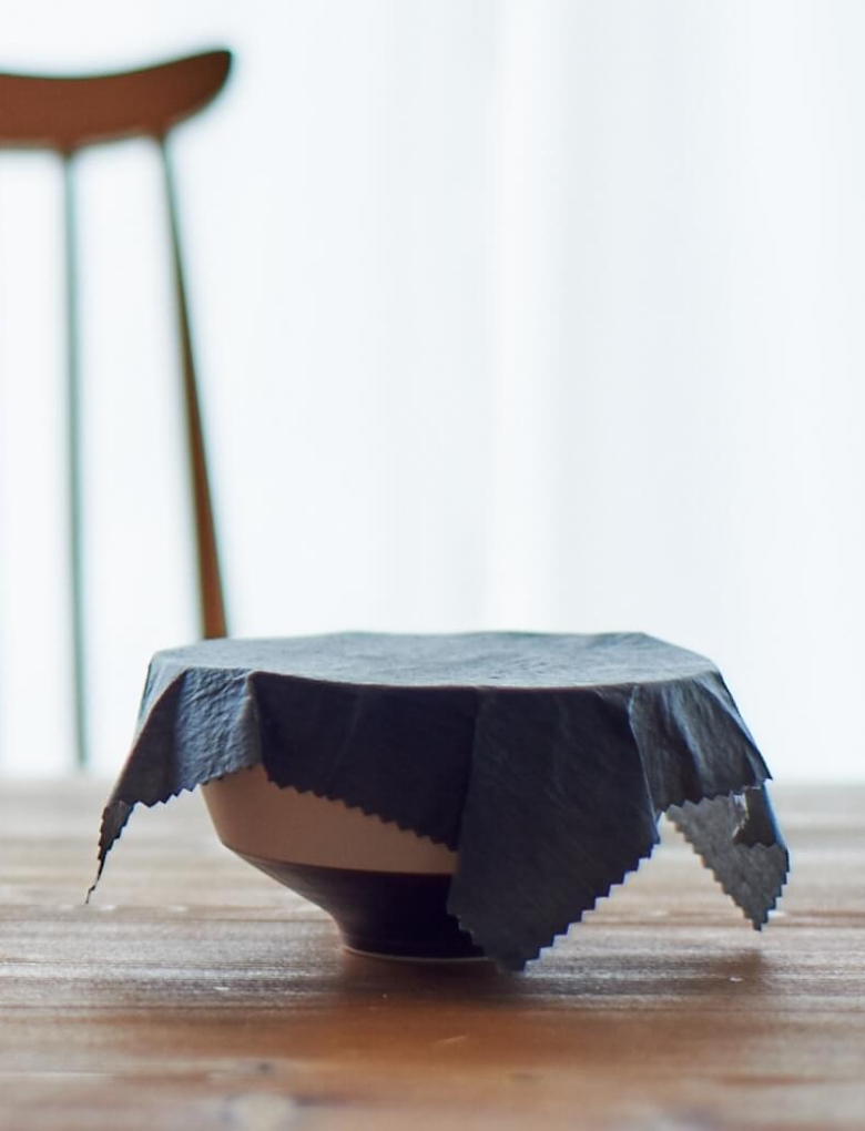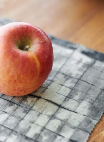「墨」で染めたコットン生地に蜜蝋を染み込ませた、100%天然素材の墨染蜜蝋ラップ。 洗って繰り返し使えるサスティナブルな食品用ラップです。 蜜蝋には抗菌性と保湿性があるので、食品の酵素や栄養素、鮮度の持ちが良くなります。
